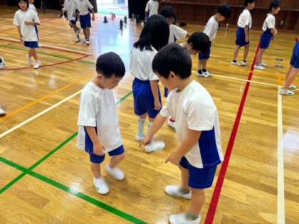2年生が1年生に優しく教えていました。
