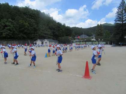 運動会練習,頑張っています。傘の動きがそろうととってもきれいです。