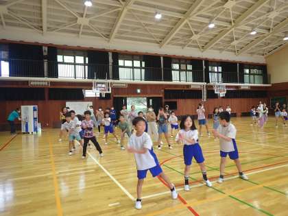 たてわりの教室メンバーで体育館に集まり、1・2年生の踊りをお手本に練習しました。