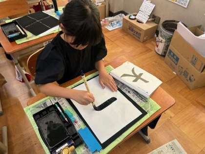 筆圧を強くして「大」という字を太く書いています。力強く書きましょう。