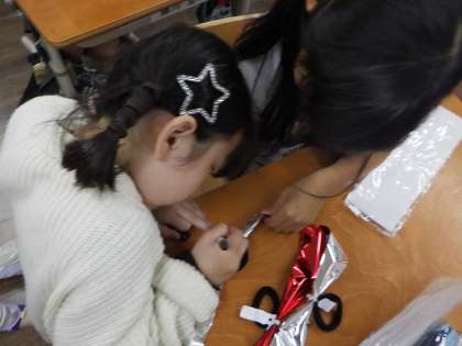 2年生に協力してもらいながら自分のものを作りました。