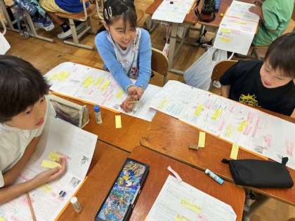 第4時では、ちいちゃんの気持ちの変化について考えました。1場面から4場面まで登場するちいちゃんは状況が変わっていく中どんな気持ちでいたのかを、本文から考えました。