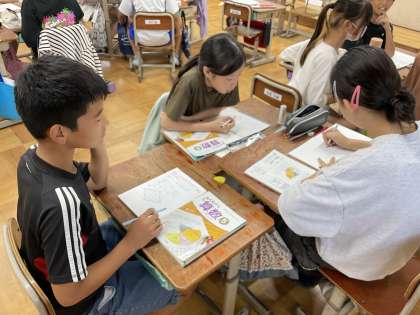 さまざまな形の面積の大きさを求める学習を進めています。学習も終盤に差し掛かり、学んできた面積の求めからも増えてきました。ここでは、学んでことを生かして「ひし形」の面積の求め方や面積を求めるための公式をグループで話し合っています。これまでの学びを生かして活発な話し合いが行われていました。