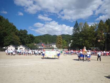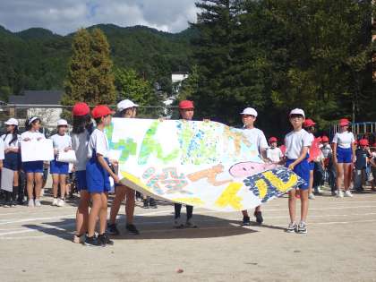 応援団長の選手宣誓や応援ダンスも披露され、みんなで一緒に踊りました。最後に、たてわりグループで交流し、円陣を組みました。