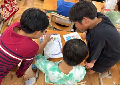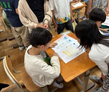一年生の横でお手紙を一緒に読んであげています。良い姿に心が温まりました。