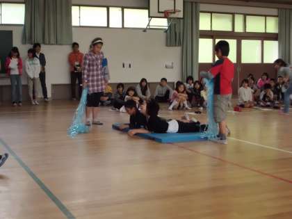 1年生を迎える会で,5年生は「岩北ではこんなことがあるよ」を発表しました。学級のグループ班で「1年生がわくわくするような内容」になるように自分たちで構成と演技を考え,発表しました。短い準備期間でしたが,進んでがんばることができていました。「相手意識をもって伝える」という意味では,声が小さかったグループは少しもったいない気がしましたが,自分たちがチャレンジしたことをしっかりと振り返り,課題として受け止め,また次回新しいことにチャレンジしてくれればと思っています。