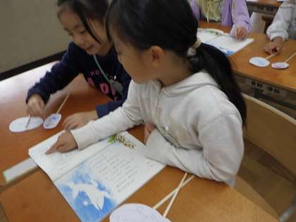 今日は自分の大好きな場面で、登場人物がどのようなお話をしているかをペープサートを使ってお話しました。いろいろな子と楽しく交流して、想像が広がっていきました。