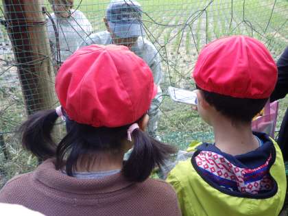 今日,秋みつけに行きました。赤色や黄色の葉っぱを見つけて拾ったり、どんぐりやいろいろな花を見つけて喜んでいました。きのこがたくさんあってそれがなんていうきのこか調べてほしいと写真を撮って調べました。いろいろなことに興味しんしんでした。3組みんなで模造紙に作っている秋の風景を増やしていきたいと思います。