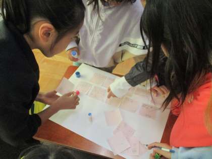 もらった付箋を画用紙に貼って、成果と課題を分析しました。