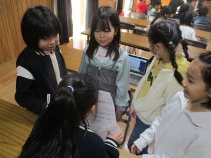 今日は自分たちの提案を地域の方と校長先生に発表します。最終確認をしています。