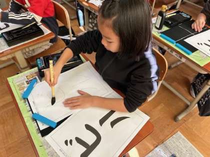 お手本をよく見ながら姿勢を正して、集中して書きます。
