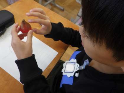 アサガオの学習が終わり、また花を育てたい!ということで、今度はチューリップを植えました。アサガオの種と比べて、球根にびっくり!大きい!栗みたい!これがチューリップになるの?と口々に言い合いながら、調べていきました。
