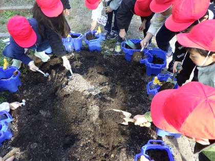 しっかりと育つ方法を確かめながら、植えました。