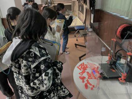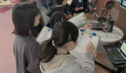 職業体験以外にもさまざまな企業の最先端の技術を体験させてもらいました。興味津々で体験したりメモを取ったりしていました。