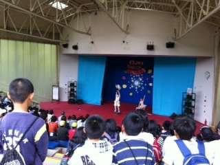 只今,リアルタイム画像が入りました。リトルワールドでは,みんな元気にサーカスを見たり,昼食を食べたりしています。
