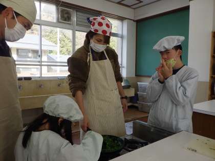 切ったりいためたり分担して手際よく活動を進めることができました。