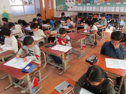 2学期の振り返りをしました。夏休み明けから自分がどれだけ頑張れたか、成長できたかを考えました。みんな真剣に振り返っています。