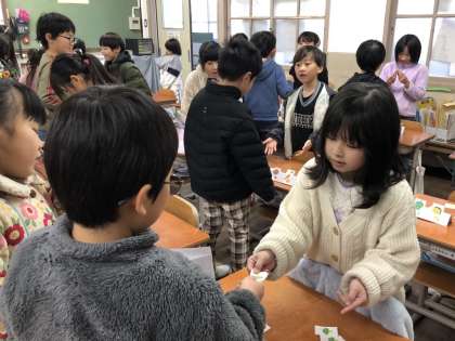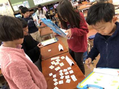 子どもたちは、お店屋さんとお客さんのどちらの役も経験しました。欲しい野菜を伝えたり、数を尋ねたりして、英語に慣れ親しみました。