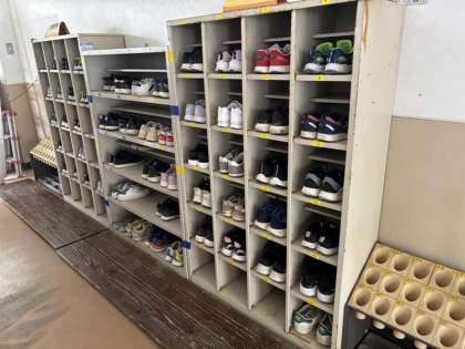 その後、靴箱へ行き、靴の入れ方を考えました。