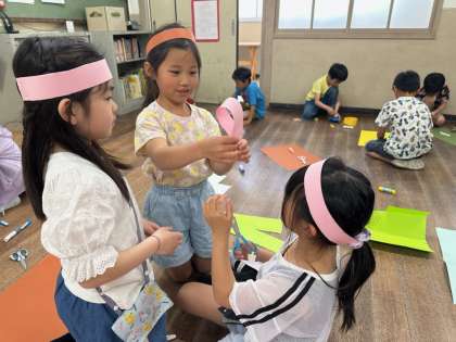 わっかをつくりました。どんな作品ができるか楽しみです。