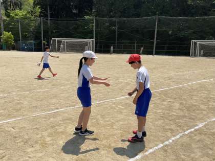 体育の学習で50m走のタイムを測りました。昨年と比べて自分の成長を喜ぶ姿やさらに「もう1回走りたい」と意欲を見せる様子が見られました。写真はタイム計測の前のウォーミングアップの様子です。和気あいあいとした雰囲気で運動を楽しんでいました。