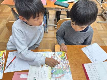 イラストの中から,人探しクイズを出し合いました。