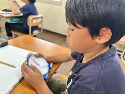模型時計を動かしながら,頑張って問題を解いています。