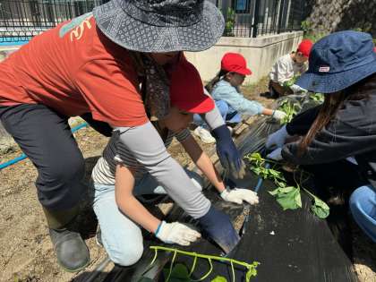 2時間目に,地域の方と栽培ボランティアの方々と一緒に