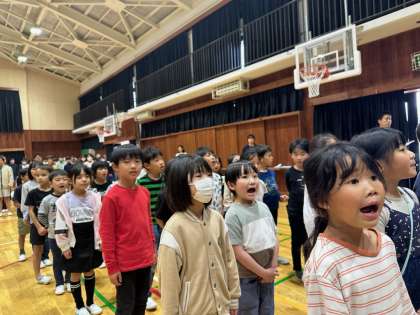 大きな声で校歌を歌ったり校長先生の憲法のお話を聞いたりしました。