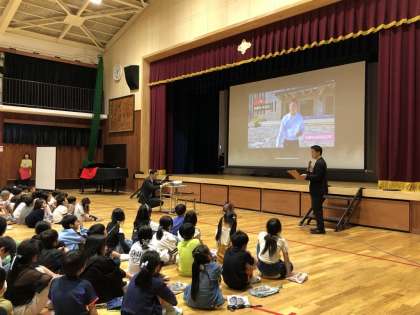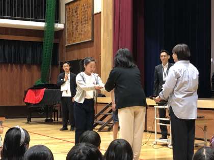 また、PTAの方から、イワスタの活動を応援する「イワスタ支援金」が贈られました。すてきな学校をつくるために、子どもたちが自分たちのアイデアを実現できるように、よく考え、使ってほしいと思います。