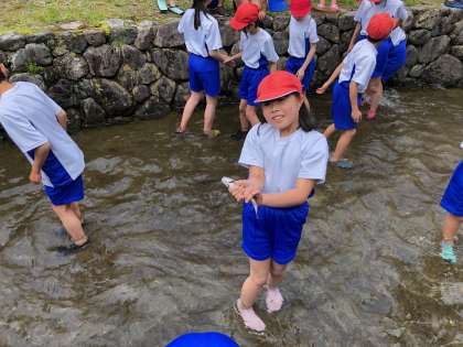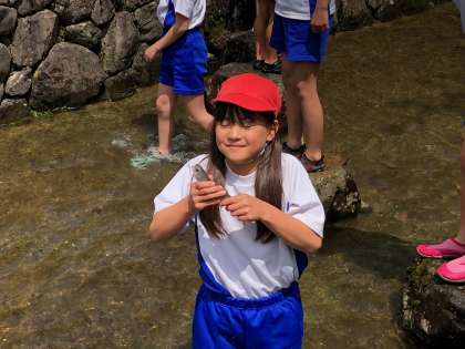 「つめたいー!」