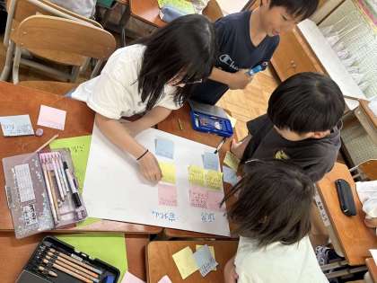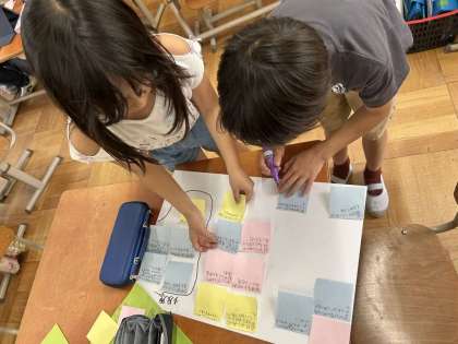 岩倉の自然のすてきを調べに坂原と岩北山にのぼり,発見したこと,不思議に思ったこと,もっと知りたいことを話し合いました。