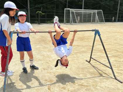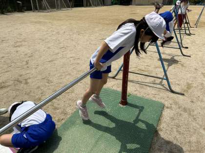 体育では、鉄棒の学習に入りました。自分は今、どんな技ができるのかな?