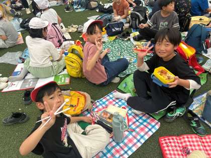 子どもの楽園に移動して,待ちに待ったお弁当です。