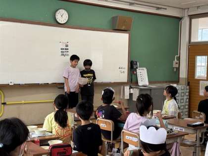 来週は、靴箱を揃える週間としてお手本のポスターを作成し、各教室にお知らせに来てくれました。