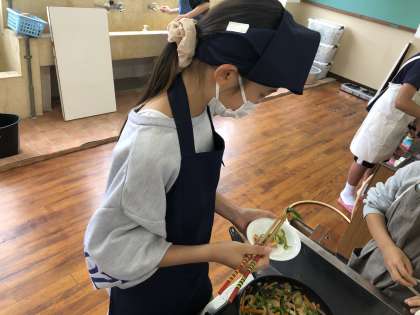 いよいよ盛り付けです。おいしそうにで出来上がりました。はやく食べたくてわくわくしています。
