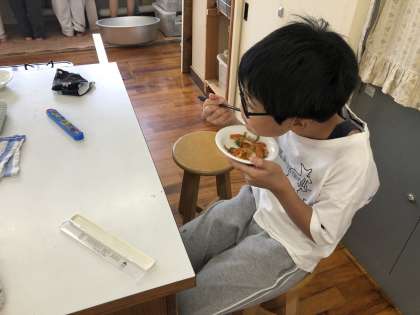 おいしそうに食べています。みんないい笑顔です。
