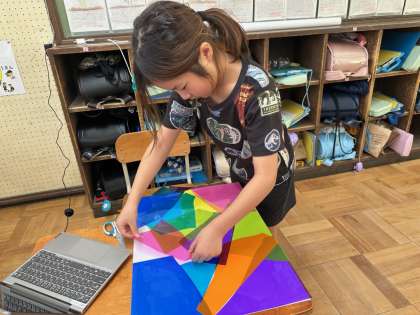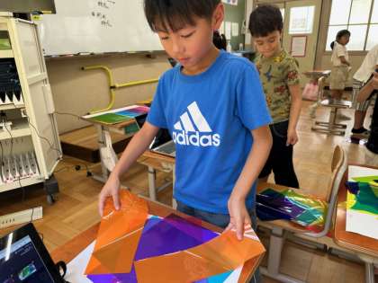 色の重なりの変化を楽しみながら,大盛り上がりで活動ができました。