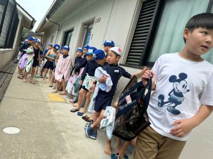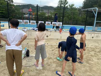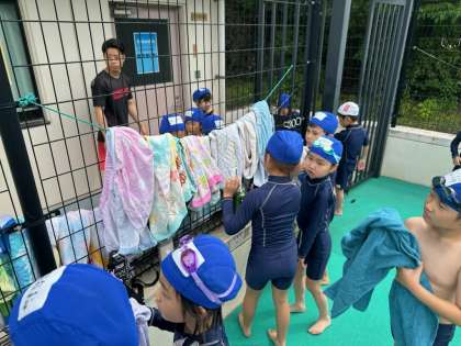 まずは,準備体操やサンダル・タオルの置く場所を確認しました。