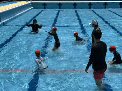 水の中は少し肌寒かったですが,みんなで入れて楽しかったです!