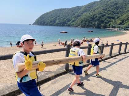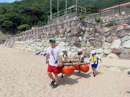 若狭でのはじめの活動は、いかだ作りです。