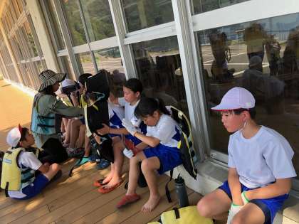 いかだ作りの途中で、休息を取りました。