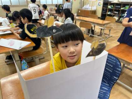 お気に入りの本の大好きなところにでてくる登場人物が,どんなことを話しているかペープサートを使って考えました。すごく楽しそうでした。