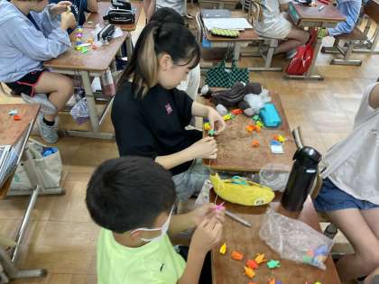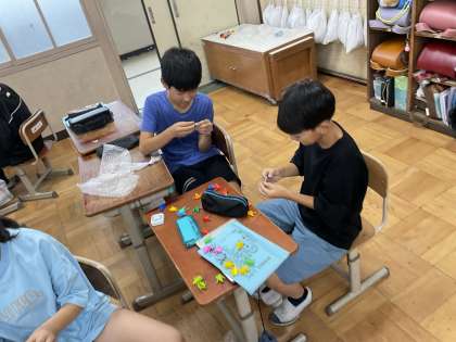 千羽鶴をまとめる作業は全員で協力しながら行いました。細かい作業が多かったですが、ひとつひとつ心を込めてまとめていきました。