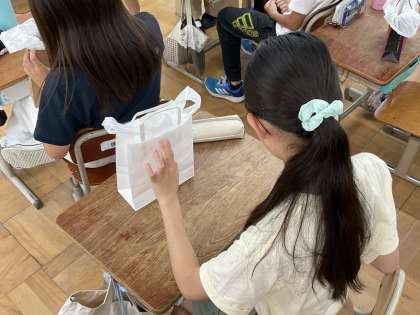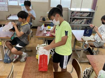 長時間のバス移動に備えてお守り袋をつくりました。移動中も楽しい修学旅行の思い出ができればいいですね。