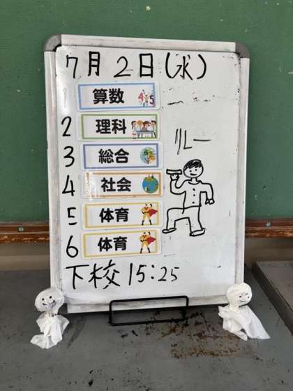 昨日は水泳学習が2時間ある日でした。昼から天候が悪くなるかも?と天気予報を見て来た子ども達。