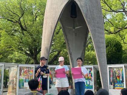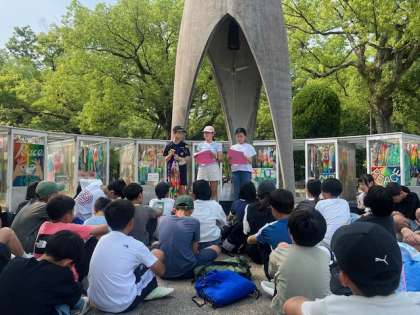 平和への祈りを込めて、みんなで作った千羽鶴を捧げました。