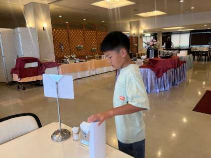 生活係りがテーブルの札を