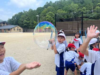 大きなしゃぼん玉ができると大盛り上がり!