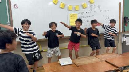 夏祭りのお店を回り終わった人たちが、バックミュージックに合わせて踊っています。